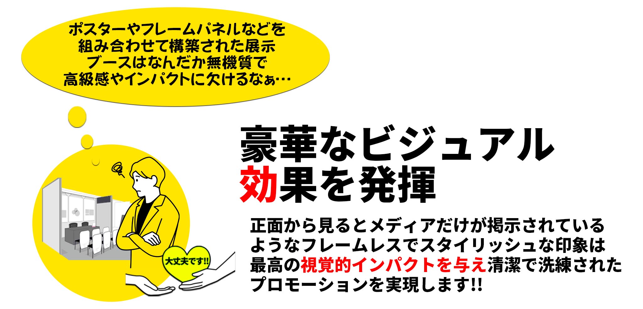 効果的なブースが簡単に作れます!印刷を自社で行っている為、低価格で提供するだけではなく、