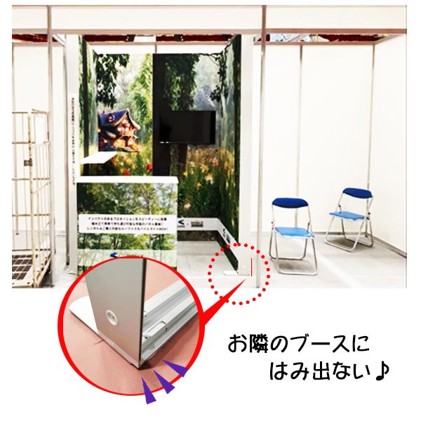 展示会等で隣のブースや通路にスタンドを、はみ出さずに設置することができます。