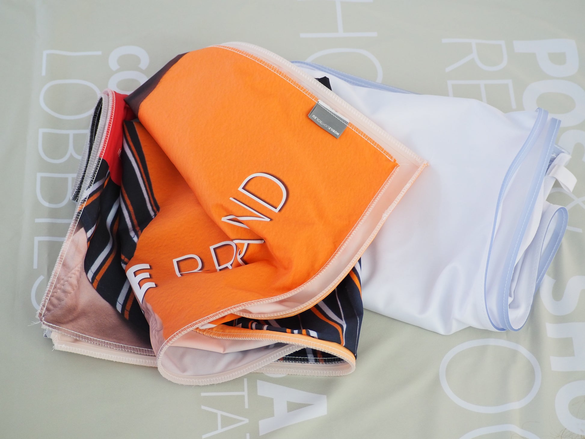 ■シワが目立ちにくい昇華プリント布地を使用。折りたたんで保管できます。